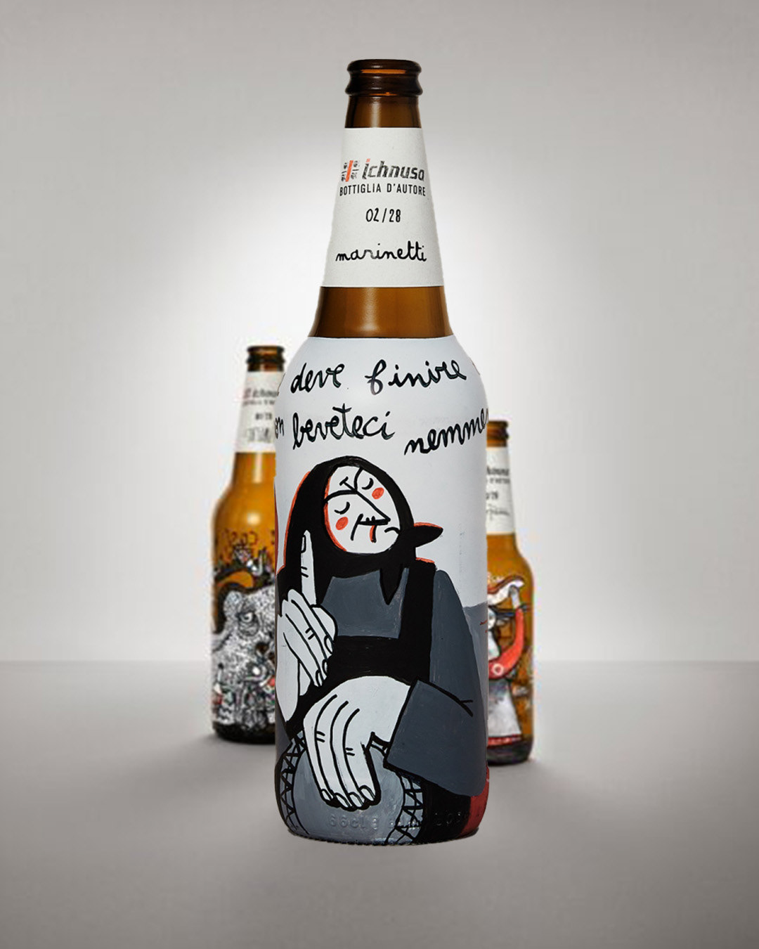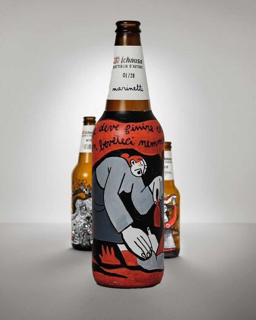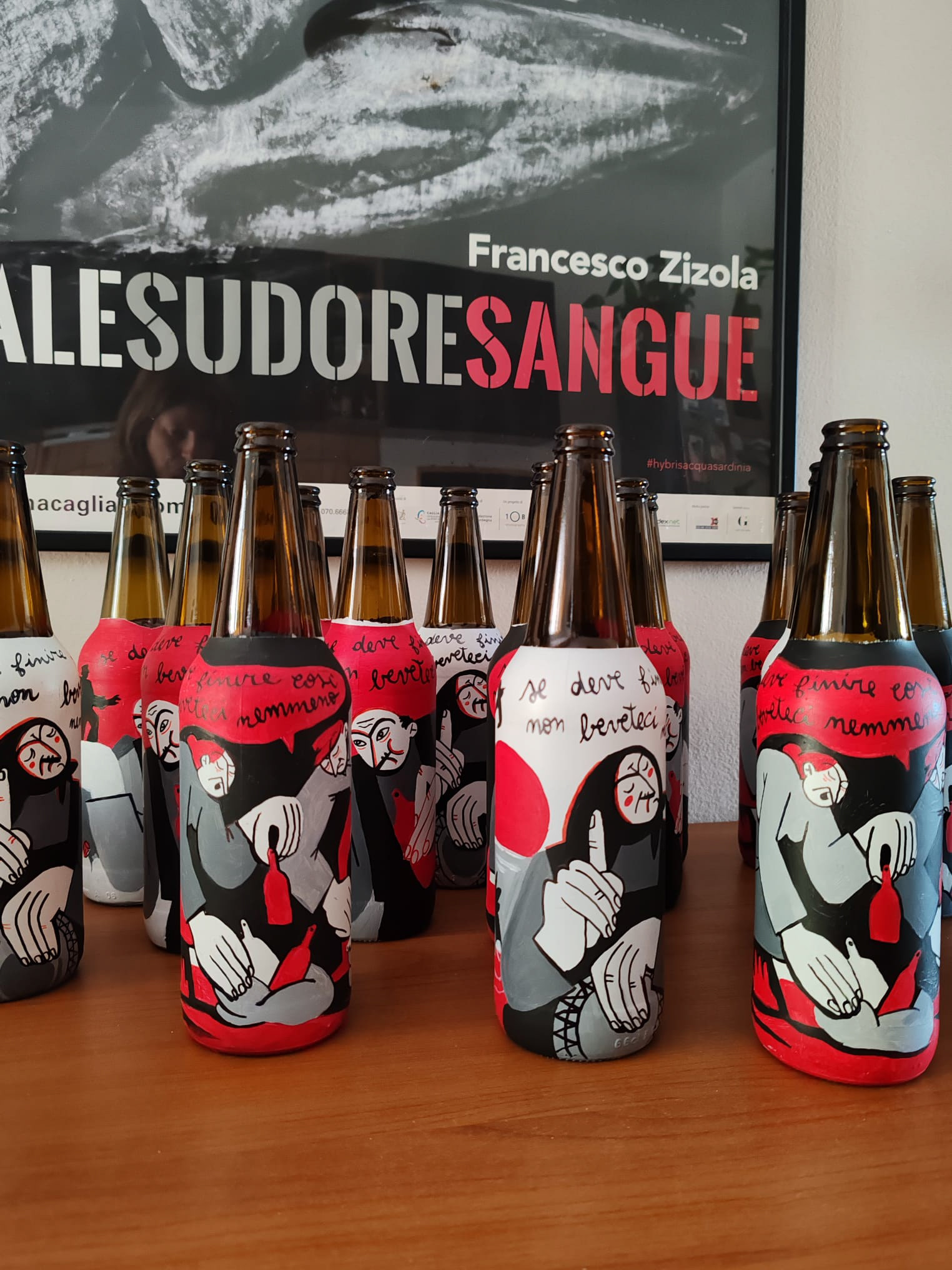 Collaborazione con Birra Ichnusa alla campagna "SE DEVE FINIRE COSì NON BEVETECI NEMMENO", asta a favore di Legambiente che opera sui territori Sardi. L'iniziativa: un’importante l’asta benefica di 15 bottiglie Ichnusa recuperate nelle iniziative di raccolta, decorate a mano da diversi artisti sardi e donate da Ichnusa a Legambiente Sardegna, che utilizzerà il ricavato per realizzare la raccolta, la catalogazione e la trasformazione in opere divulgative dei rifiuti che verranno raccolti in 5 spiagge simbolo della Sardegna.