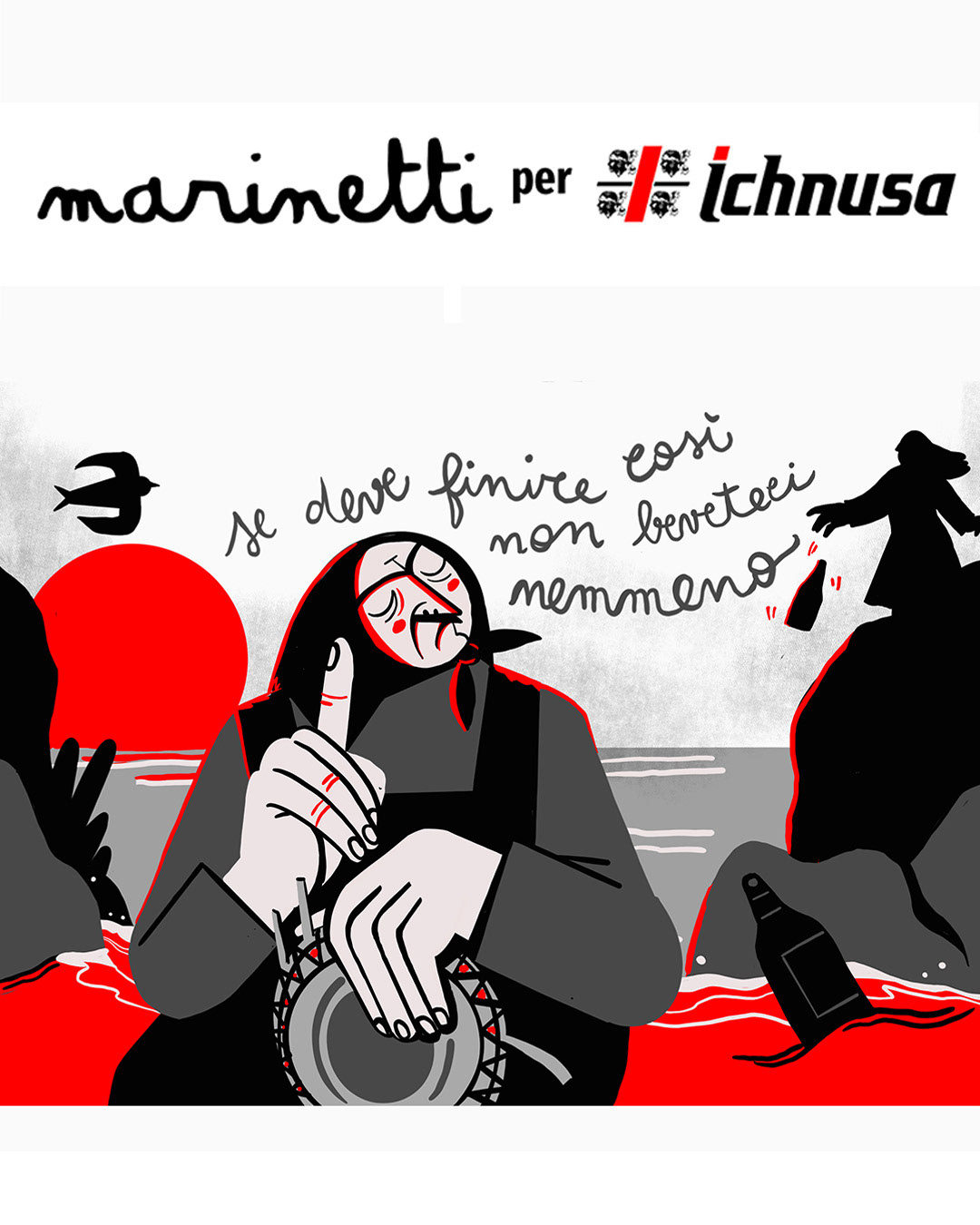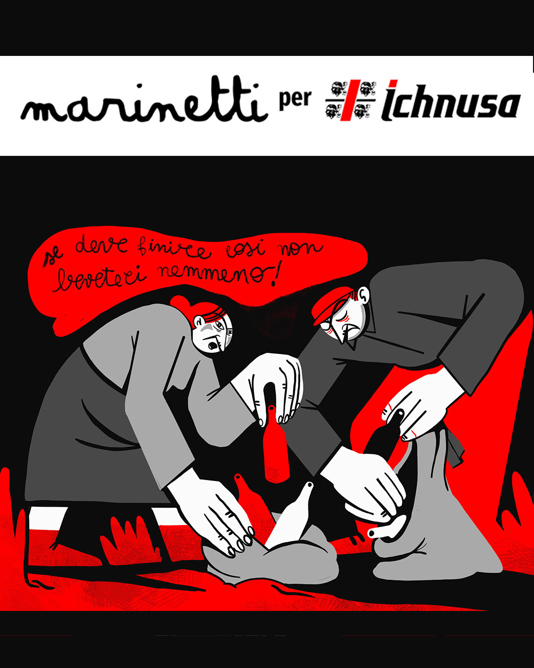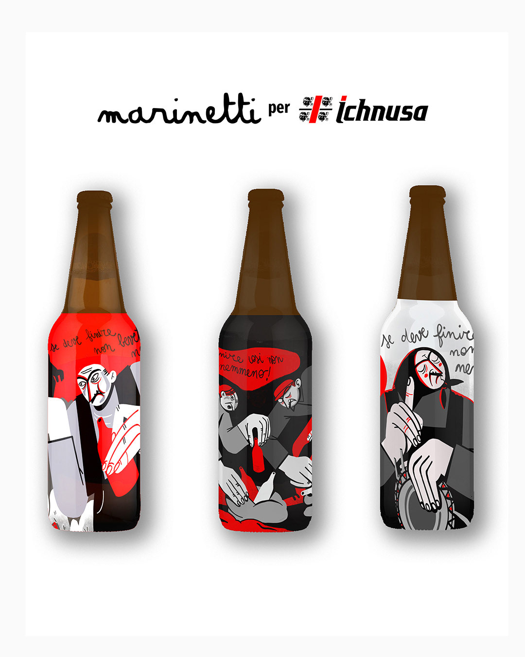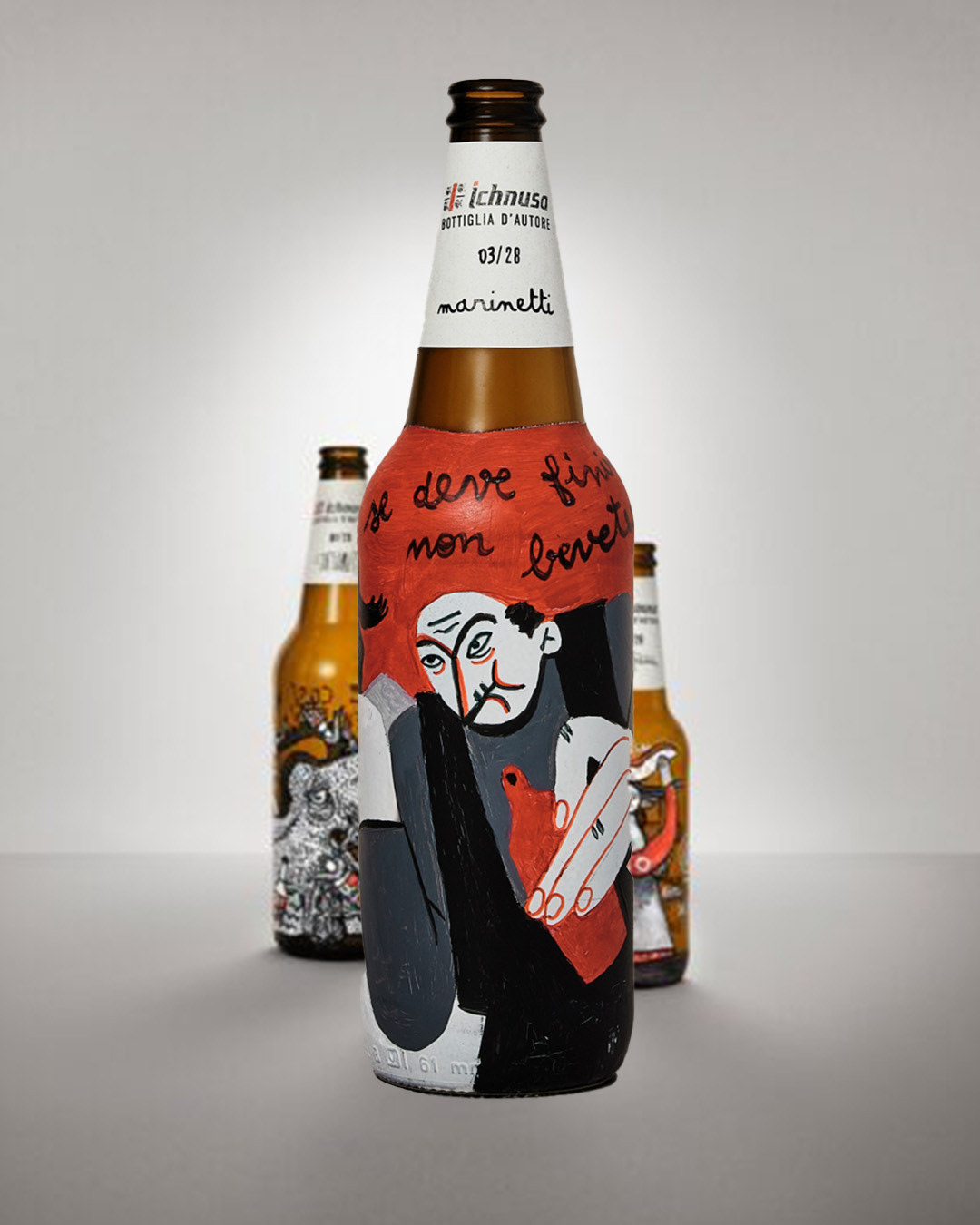 Collaborazione con Birra Ichnusa alla campagna "SE DEVE FINIRE COSì NON BEVETECI NEMMENO", asta a favore di Legambiente che opera sui territori Sardi. L'iniziativa: un’importante l’asta benefica di 15 bottiglie Ichnusa recuperate nelle iniziative di raccolta, decorate a mano da diversi artisti sardi e donate da Ichnusa a Legambiente Sardegna, che utilizzerà il ricavato per realizzare la raccolta, la catalogazione e la trasformazione in opere divulgative dei rifiuti che verranno raccolti in 5 spiagge simbolo della Sardegna.